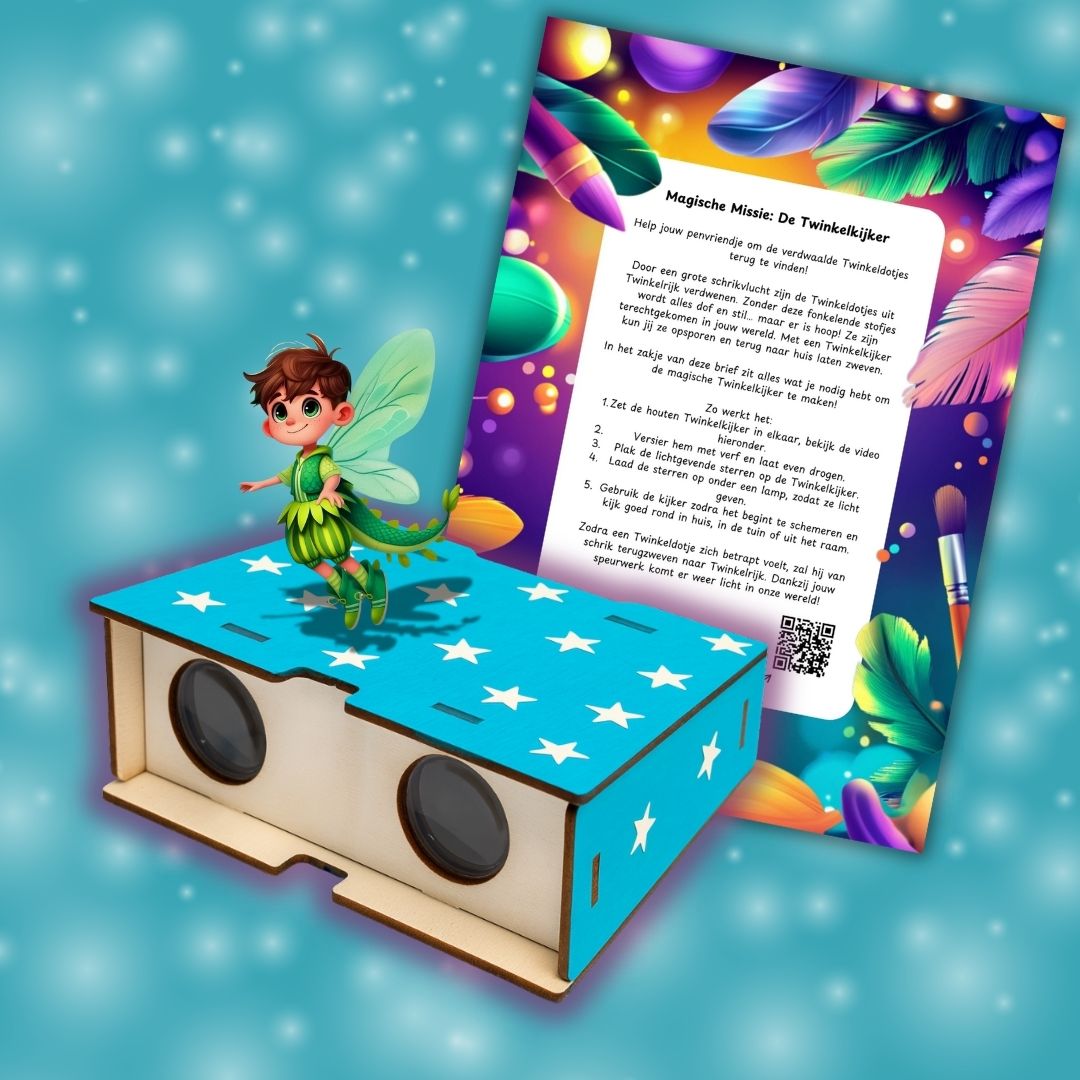 ✨ De opdracht: een houten Twinkelkijker bouwen en versieren met lichtgevende sterren. Daarmee kan jouw kind dingen ontdekken die voor gewone ogen verborgen blijven...