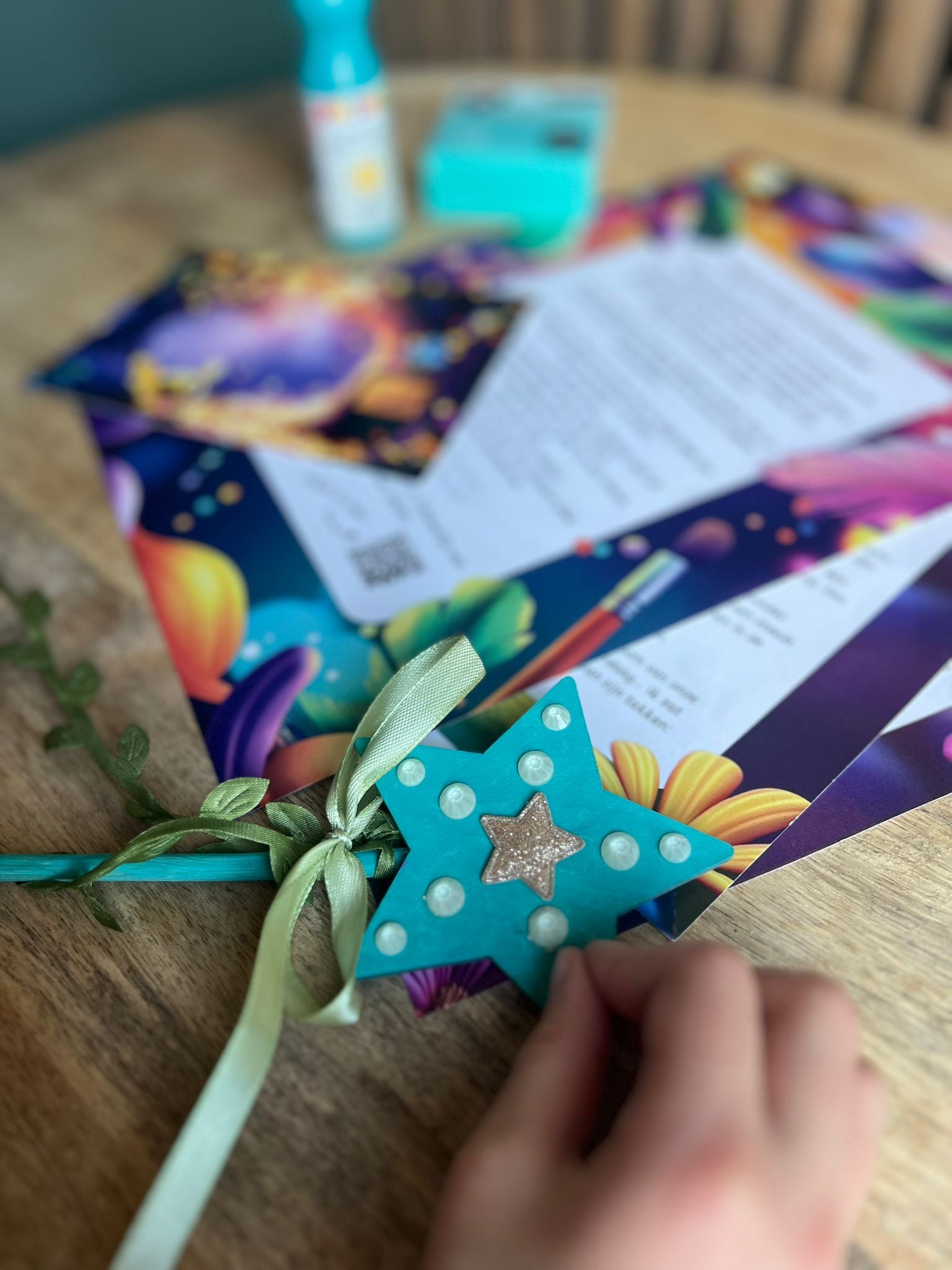 - Een magische kennismakingsbox met 3 verzegelde zakjes vol knutselmissies